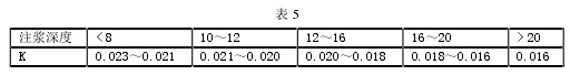 (2)根据注浆地层深度计算 :P=KHP为设计注浆压力,MPa;H为注浆处深度,m;K为由注浆深度确定的压力系数。