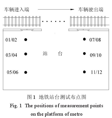 但是,地铁在带给人们便利的同时,也带来地铁噪声。地铁车站是人们乘坐地铁必须经过和驻足的场所,随着人们生活水平的提高和对环境保护意识的增强,地铁站内噪声情况越来越被更多的人所关注。掌握地铁车辆进出站台的噪声与振动分布现状[1―5],为地铁站台减振降噪设计[6,7]、人们工作环境的改善提供依据,具有较高的现实意义和应用前景。