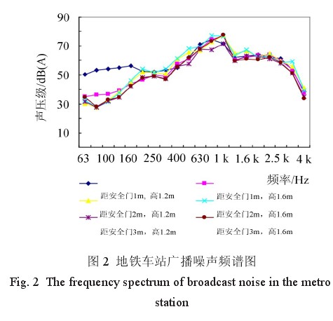 (1)在无车辆通过时广播噪声为主要噪声源,等效声级可达到79.1 dB(A),主要频率范围分布为500~1 000 Hz。