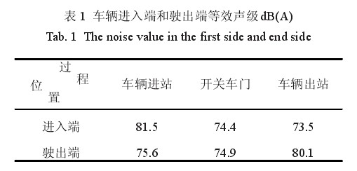 地铁车辆进入端和驶出端分别测试得到的噪声值,如表1所示。