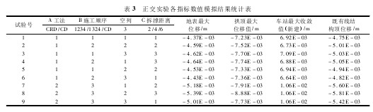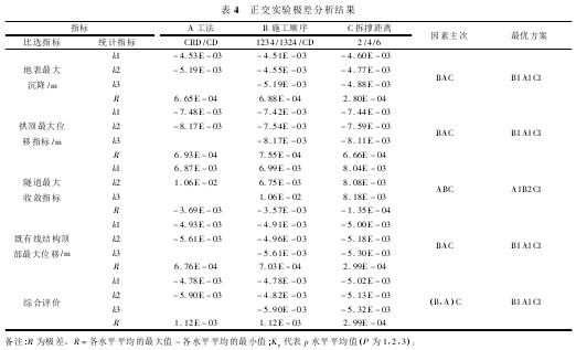 ( 1) 近接施工工法的选择,工序的安排是工程安全施工的关键,正交实验是施工工法选择及优化的一种有效手段。