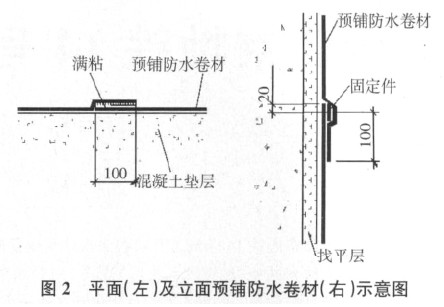 2)平面预铺防水卷材采用空铺法,立面和斜面采用机械固定法(图 2)。