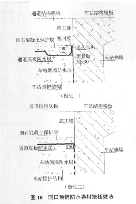 3.3.2 通道洞口防水层的甩槎和接槎施工