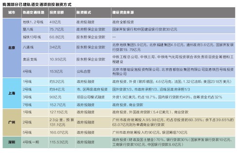 地铁投融资特色