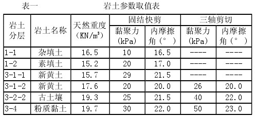 车站地层自上而下依次分别为:杂填土、素填土、新黄土、古土壤、粉质粘土,各层岩土参数取值见下表: