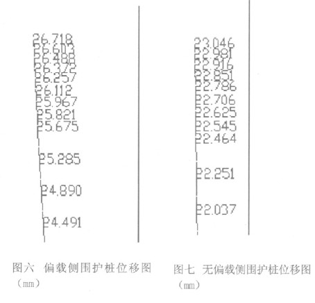 通过计算可以得出:在偏载的作用下,基坑两侧围护桩的受力状态明显不同,偏载侧的最大弯矩为1184.9KN·M,最大剪力为608KN;无偏载侧的最大弯矩为567.7KN·M,最大剪力为436KN。弯矩增大617.2KN·M,剪力增大172KN。偏载侧需配纵向受力钢筋10,066mm2,箍筋1,579mm2;无偏载侧需配纵向受力钢筋4,712mm2,箍筋1,579mm2。