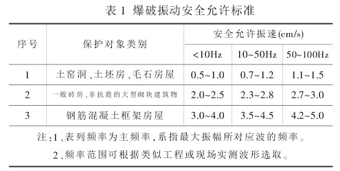 1)根据《爆破安全规程》爆破振动安全允许范围标准见表 1。