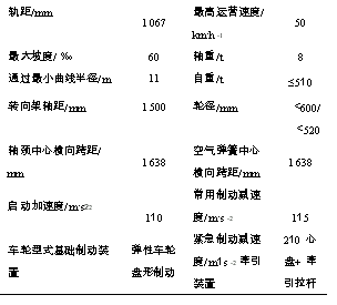根据香港有轨电车设计任务书要求, 该转向架的主要技术参数列于表1 中。