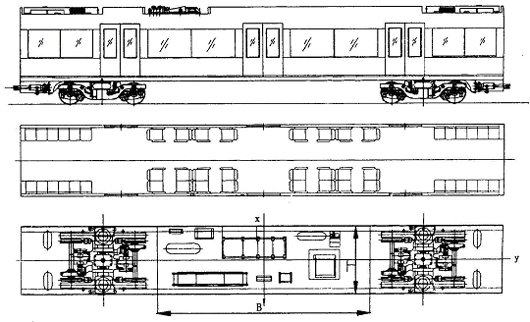 (2) 采用适当的最优化方法,求解数学模型。附近;若代数和不为零,可在结构允许的范围内改可归纳为在给定的条件(例如约束条件) 下求目标变某些设备的安装位置以达到重量分配的目的。设备重量,并应以运用状态的整备重量为准; xi、yi 为i个设备重心的坐标, i = 1 , n 。下面以大连城市轨道3 号线车辆为例,介绍设备布置情况。