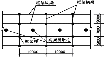 图4 框架+ 桥梁式车站梁柱布置示意—