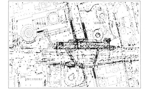 结论:综上所述,本站将站位设于深圳市商业中心人民南路与嘉宾路交叉路口处,埋置于人民南路东侧下沉式绿化广场与国贸大厦地面停车场前面的地面下,横跨嘉宾路,中心里程为CK1 + 275122(图4) 。目前的站位,主要是避开了车站施工时对国贸大厦广场前喷水池处雕塑(因为该雕塑为深圳市重要的标志物) 的影响,加大了国~ 老区间长度,并对更好地与南国影联地下开发空间结合创造了有利条件。车站主体结构沿人民南路东侧布置,呈南北走向,南接罗湖站, 北接老街站。车站站位设置符合深圳市地铁线路走向和地铁路网规划、城市交通及建筑规划的要求。
