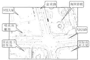 (2) 由于“ + ”路口的东南角为南国影联前约12000m2的下沉式绿化广场,如图1 所示,车站设在路口后还可以利用绿化广场下的地下空间,达到相互吸引客流的目的。