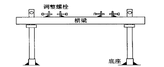 以一根钢轨为基本轨将轨道尺架在两股钢轨上, 测量此时两轨面连线中心线到基标中心的距离。根据实测轨面和基标高差对两支承丝杆作相应的升降。此时可以拧动两丝杆,使支撑架连同轨道上升或下降。本工序应对前后两支撑架作适当调整,使其顶面尽量在一平面内。