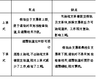 (3) 结构尽量简单,操作方便。缝线路,承轨台式整体道床,全线共有10 个车站,1 个3 方案比选综合车场。线路的整体道床施工、铺轨、整道总工期只钢轨支撑架分为上承式支撑架和下承式支撑架两有153 d , 且一半时间处于雨季,施工难度较大。种类型,其优缺点见表1 。