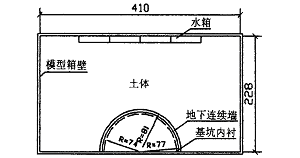 根据试验设计的目的和基坑的实际尺寸,并结合L —30 土工离心机的工作条件,试验拟模拟1/ 2 基坑平面,试验的模型率为N = 180 。模型布置平面图如图2 所示。