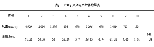 表1 方案1 风道阻力计算数据表