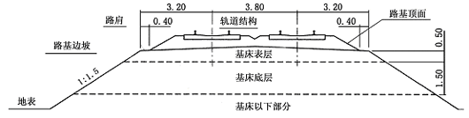 图1 碎石道床地段非渗水土路基标准横断面(单位:m)