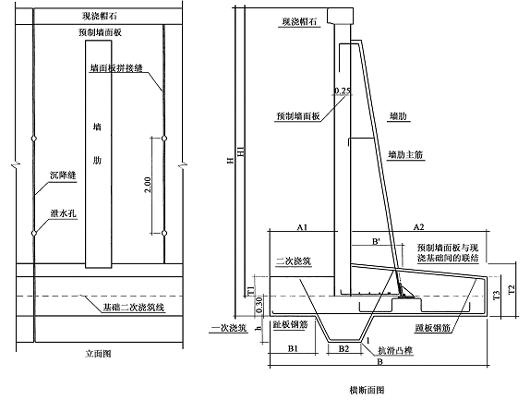 图4 部分预制装配式钢筋混凝土挡土墙构造图