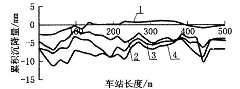 图5 纵向沉降测量结果1-1997. 09. 19 ;2-1997. 12. 26 ;3-1998. 04. 27 ;4-1998. 09. 27