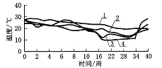 图6 地铁站台层温度与室外温度关系1-土体温度;2 -衬墙温度;3 -室温;4 -室外温度