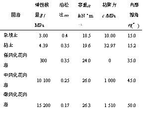表2 围岩物理力学指标