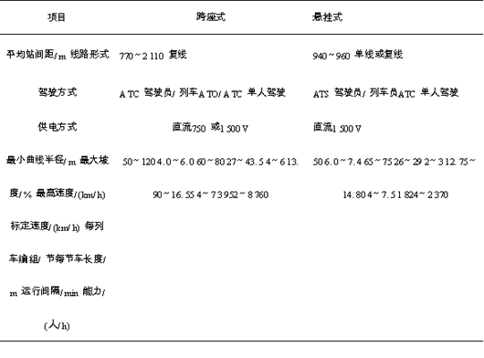 表8 跨座式单轨与悬挂式单轨比较
