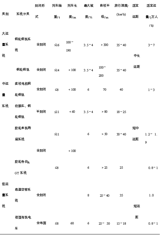 (2) 城市轨道交通可根据客运量大小不同,选择合适的、经济的运量级系统。