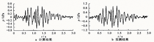 图7 车站结构模型中部测点动土压力时程的计算结果与试验结果