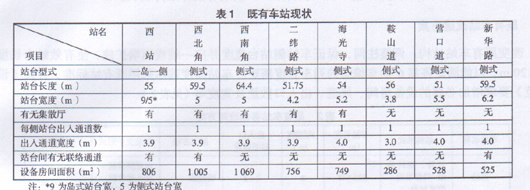 8座车站的站台有效长度均只能停靠三辆车编组的列车。车站站台宽度也较窄,且每侧站台只有一个出人通道。设备用房建筑面积严重不足。见表1