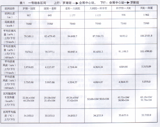 (6)根据模拟计算结果,深圳地铁一号线除个别区间因设存车线而需增加机械通风以外,其余区间靠列车活塞风可满足正常运营时隧道内温度指标要求。