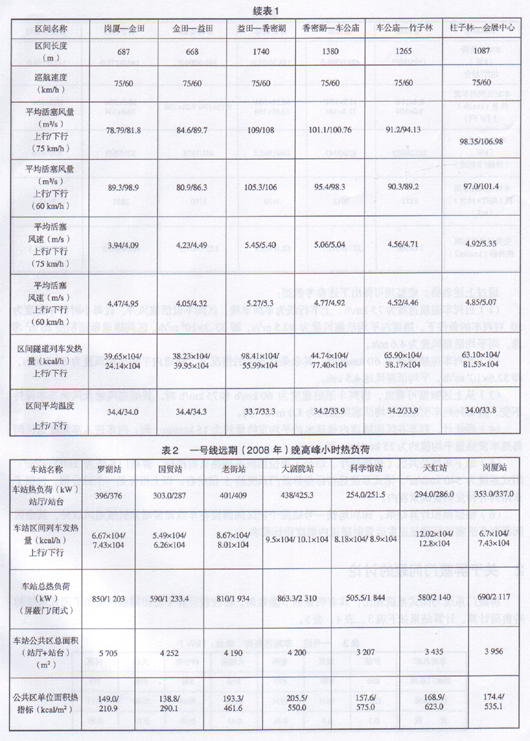 (4)经统计,列车在区间隧道内每延米的平均发热量约为15kcal/m·列。列车进入车站隧道区间每延米发热量平均值约为25kcaVm·列。