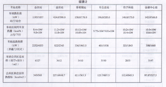 屏蔽门系统与闭式系统相比,具有明显的节能效果,在校核计算中按相同条件增加了闭式系统的冷负荷计算,计算结果如下表3、表4、表5。