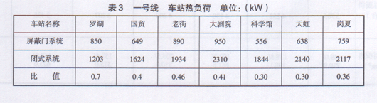 (1)屏蔽门系统的冷负荷为闭式系统冷负荷的1/2-1/5,其平均值为0.35, 即屏蔽门系统在同等条件下其冷负荷仅为闭式系统冷负荷的1/3左右。