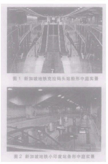 新加坡东北线地铁所有车站均采用中庭建筑形式,创造良好的地下空间感和通视效果,如克拉码头站船形中庭(见图1),小印度站的条形中庭(见图2),乘客在进站后即可直视站台列车及候车情况。