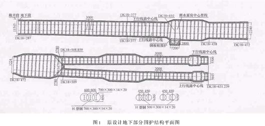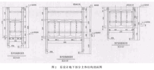 原设计地下部分围护结构平面图如图1,剖面图如图2。