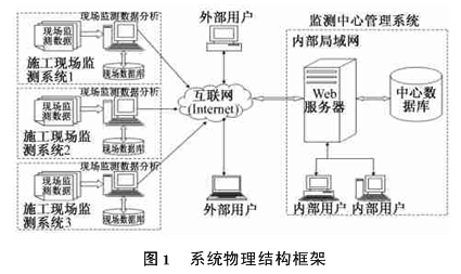 监测中心管理系统布设在地铁管理单位,从多个现场监测系统及时收集监测数据,进行集中管理和存储,实现各施工现场监测数据的对比分析,以及对外发布监测信息,使各类用户可通过Intranet或Internet方便地检索查询所需要的信息。