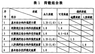 荷载组合参照表1,计算中考虑荷载的最不利组合。