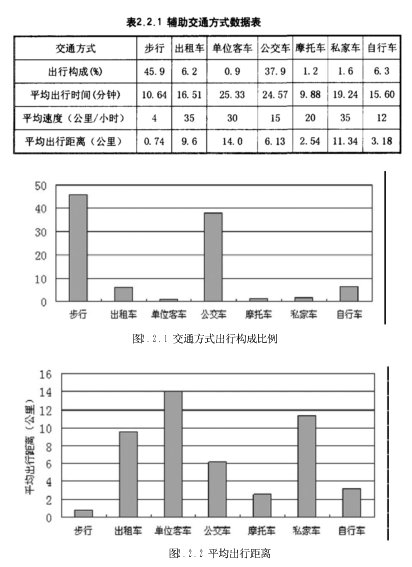 调查数据中步行是最主要的换乘方式,占总量的45.9%,其次是公共交通。必须予以充分重视。如图2.2.1。