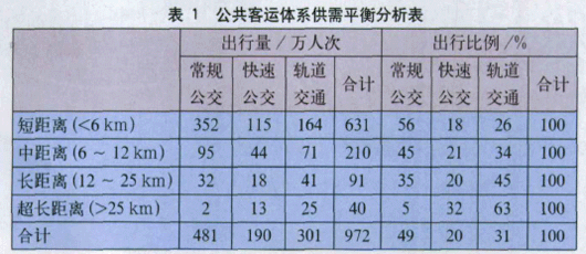 (1)分担率目标。根据客运供需平衡综合分析,近期骨干公交网络(轨道+BRT)分担的公交出行比例应达到50%左右,其中BRT分担20% ,如表1。