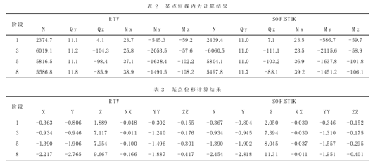 轨道梁计算采用两套程序同时进行, 一套为自编程序 RTV, 一套为 SOFISTIK 程序( 根据需要进行了相应的二次开发) 。下面以跨径 20 m( 半径R=100m) 轨道梁为例, 介绍两套程序的计算结果。非特别注明外, 所取点为 1/4 跨径附近某点。