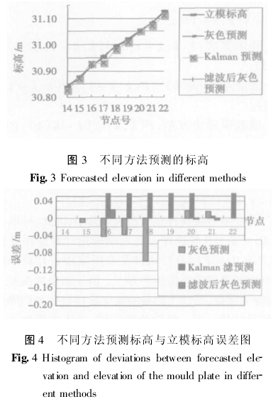 2)灰色理论预测的结果更接近实际立模标高,而通过Kalman滤波法对预拱度实测数据进行滤波后,再用灰色理论进行预测后的标高与实际标高的误差更小,通过Kalman滤波法与灰色理论的结合对施工监控的线形进行预测,可用于施工监控。