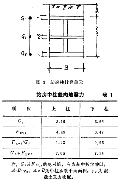1.竖向地震力沿结构高度的分析,不是结构下部最大。通过站房中柱的比较,上柱的竖向地震力与静重力之和,大于下柱,其震害上柱必然偏重。
