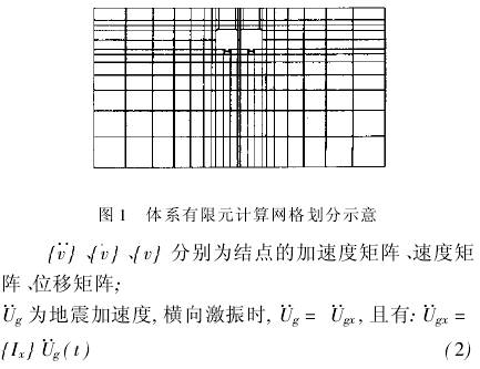 地铁结构的振动形态受地震波入射方向的影响较大,以前人们认为水平地震力是导致结构破坏的主要因素,研究表明竖向地震力对结构的破坏也不容忽视,所以分析中不应单独考虑一个方向的地震力,现在对竖向地震力的分析采用冲量法,但该法只能分析出竖向地震荷载作用下结构所受地震力与结构自重的比值,无法全面了解结构的动力行为,存在很大局限性,用有限元法能全面分析结构的位移、加速度、应力的变化。按(1)式竖向激振时Ug¨