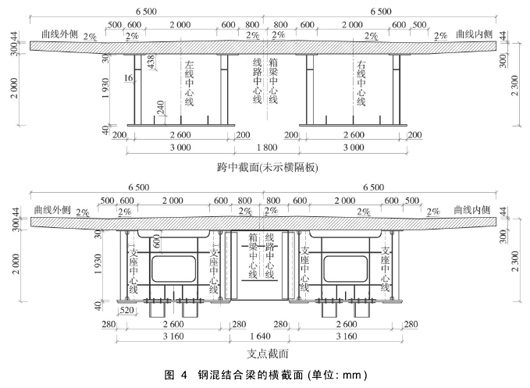 高速客运专线铁路的结合梁设计,不仅要关注各截面的内力、应力、变位是否满足规程、规范的要求,更要注重结构自振频率和相对变形,只有这样才能满足高速客运专线铁路的结构受力、耐久以及平顺度等高标准的要求。