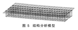城际轨道交通不同于以往的普通铁路及轻轨对结构的自振频率的要求,在结构的强度、刚度和各部应力满足要求时,结构的自振频率还会远远低于规范的限值,因此,首先要进行结构的自振频率分析。在结构自振频率分析时,选择合理的桥面板厚度及U形钢箱高度是本桥结构计算的重点工作,结构分析模型见图5。