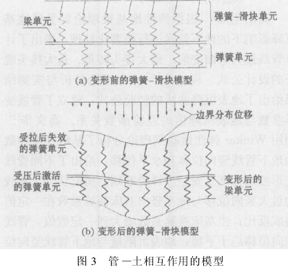 O′Rourke[10]根据隧道开挖引起的地层移动模式,分析了柔性管的破坏准则,提出了管—土相互作用的模型。