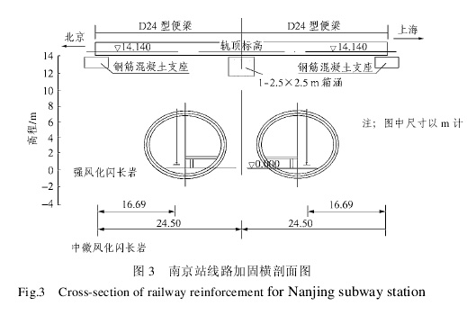 摘要:受南京铁路站场的制约,地铁南京站主体结构被分割为南侧明挖区、过站区和北侧明挖区等三个部分,过站区在既有南京铁路站场下方,其结构型式为双线分离式隧道,隧道跨度大、埋深浅、线间距小,采用暗挖矿山法构筑。在既有铁路线下修建地铁车站,必须严格控制线路沉降。通过在地表线路和便梁支墩上布置沉降测点并跟踪施工进程进行监测,探讨地铁过站隧道施工对地表线路变形的影响。监测结果表明:铁路线路加固措施和过站隧道施工方案是合理可靠的。同时也通过对监测数据的分析,提出关于类似工程施工的一些建议。
