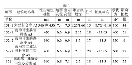 广佛线地铁施工4标由中铁三局承包土建工程,其中朝安-桂城区间(下简称朝桂区间)经过部分民房和低层建筑物,根据目前承包商收集到的资料,共有5幢房屋的186根桩基础侵入隧道,建筑物原有桩基类型都为锤击灌注桩,其中159#属新增托换设计。房屋参数如表1: