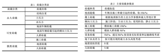 本计算采用水土分算的加载形式,水荷载作用在结构主体上,土荷载作用在围护上。考虑到施工阶段、初始使用阶段、正常使用阶段、后期使用阶段、地震作用、人防作用等多种工况,经过内力分析,地震阶段对结构设计不起控制作用。经过综合分析,在北京地区用明挖法修建地铁车站时,采用上述方案是合理可行的。
