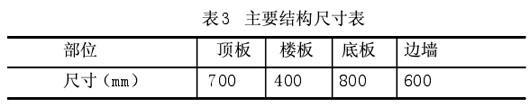 标准段设计方案:根据各种工况下的结构计算分析,得出地震阶段对结构设计不起控制作用,依据正常使用阶段和人防阶段的内力结果拟定本站主要结构断面尺寸如表3所示,标准段结构断面图如图3。